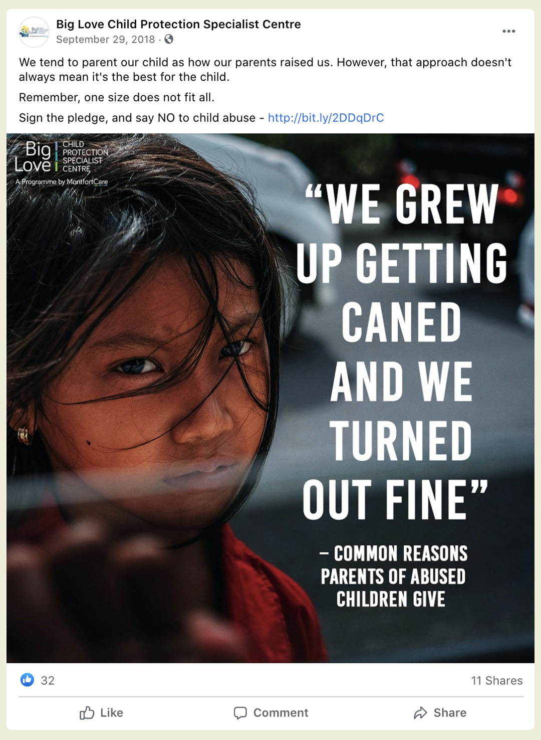 Set up in May 2013, Montfort Care’s Big Love Child Protection Specialist Centre is one of the three centres in Singapore set up by the MSF to help families with child protection concerns and improve their functioning and resilience. The key to ending child abuse is prevention.