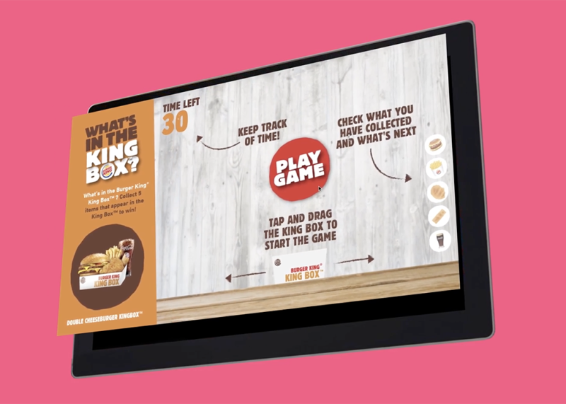 The mechanics of the game was to move a King Box™ across the screen to catch the right food items. Collecting all five items allowed the passenger to get a Burger King® coupon via email. The game increased memorability and effectiveness by changing a passive narrative into an interactive engagement.