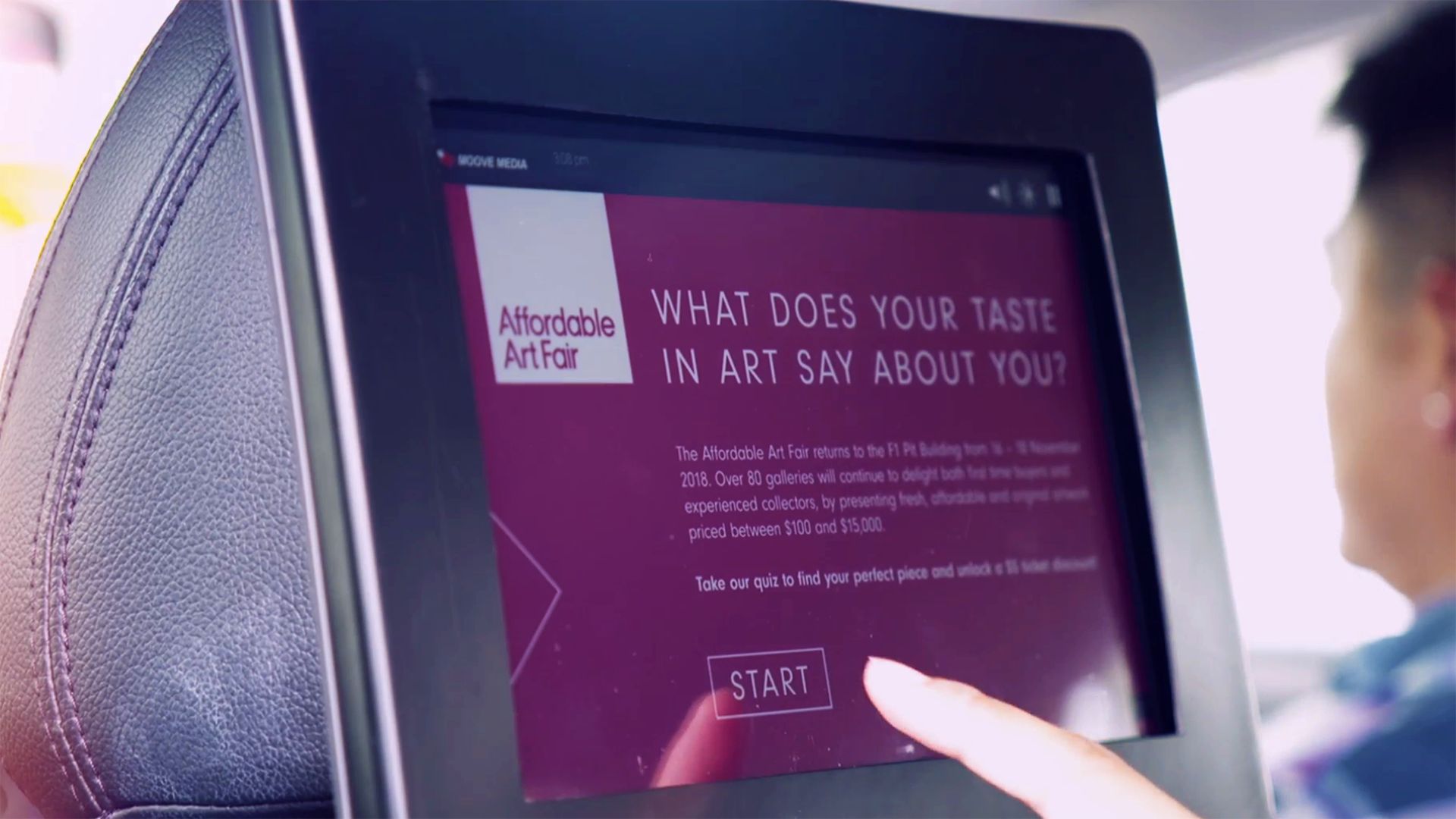 IDOOH partnered with The Affordable Art Fair Singapore and Moove Media to drive art lovers to the 13th installation of the contemporary art fair through an interactive in-taxi campaign comprising – an interactive art personality quiz and discount codes to support lead generation and visitor conversions.